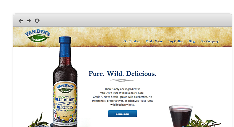VanDyk’s by Nature produces 100% pure wild blueberry juice in Nova Scotia. We developed an online marketing strategy and designed an e-commerce site to showcase VanDyk’s products and increase their brand recognition both nationally and internationally.